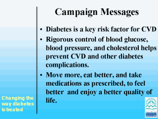 We plan to emphasize that diabetes is a key risk factor for CV disease and that rigorous control of all three risk factors can help prevent heart disease and other diabetes complications.