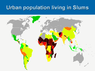The dark regions show higher concentration of people live in slums in that region or country. Now compare this with the next slide.