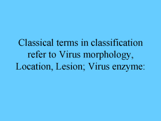pico = small in greek, parvo = small in latin, orbi = ring, calici = cup Location: adeno = gland, entero = gut, rhino = nose, myxo = mucous, pneumo = air Lesion: pox, flavi = yellow, morbilli = sick, herpes = creeping (snake like), aphtho = vesicle, lenti = slow Virus enzyme; retra = reverse transcriptase. |