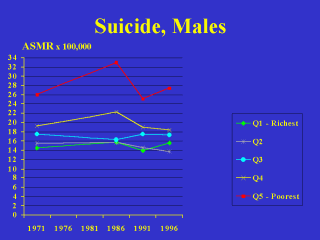 There was little net change in the pattern of suicide rates for males, either in terms of levels or disparities.
