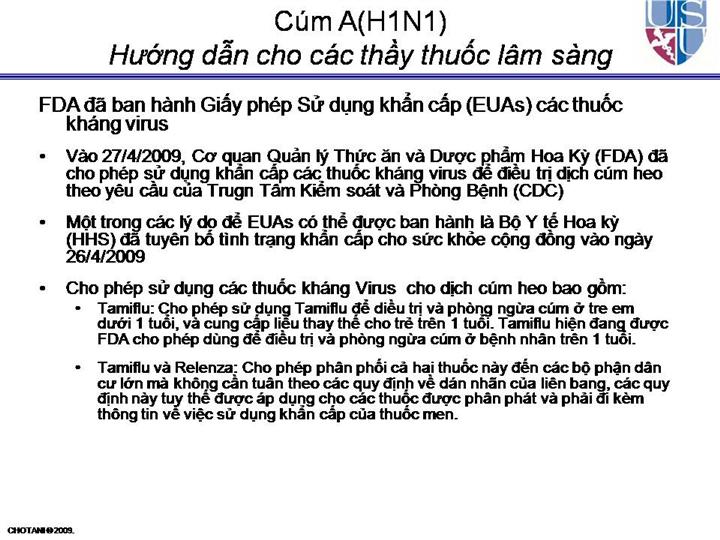 FDA authorizes emergency use of influenza medicines, diagnostic test in response to swine flu outbreak in humans [news release]. Rockville, MD: U.S. Food and Drug Administration. April 27, 2009. http://www.fda.gov/bbs/topics/NEWS/2009/NEW02002.html. Accessed April 28, 2009.