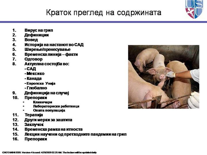 Оваа лекција обезбедува базични информации за свинскиот грип. Оваа лекција ќе се надополнува секоја недела со нови информации и податоци. |