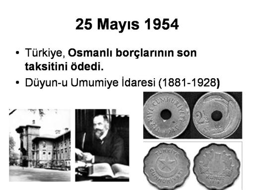 “Düyun-u Umumiye, 1881 - 1928 yılları arasında Osmanlı Devleti 'nin dış borçlarını denetleyen bir kurumdu. II. Abdülhamit döneminde kurulmuştur. Sözcük, "Genel Borçlar" anlamına gelir. Düyun-u Umumiye kurulduğu yıldan itibaren, Osmanlı Devleti' nin ekonomik ve mali yaşamı üzerinde etkili bir rol oynamıştır. Osmanlı Devleti, ilk dış borçlanmasını, Kırım Savaşı (1853-1856) sırasında, savaş maliyetlerini karşılamak için gerçekleştirdi. Ancak mali durumu düzelmeyen devlet, savaştan sonra da borç almayı sürdürdü. Bundan sonra da borçlanmayı neredeyse alışkanlık haline getiren Osmanlı Devleti, yaşadığı her ekonomik sıkıntıda dış borç almaya başladı. Bu borçların verimli kullanılamaması sonucu, kısa sürede, değil borçlar, faizleri bile ödenemez hale gelindi. 1874' te devlet mali iflasın eşiğine geldi ve bir kararname çıkardı. Bu kararnamede, Osmanlı Devleti vadesi gelen borç taksitinin ancak yarısını ödeyeceğini açıklıyordu. Ancak açıklanan bu söz de yerine getirilemedi. 1877-78 Osmanlı-Rus Savaşı sırasında, Osmanlı yönetimi yeni bir mali bunalıma sürüklendi ve Osmanlı Bankası ile Galata Bankerleri'nden almış olduğu iç borçlarını da ödeyemeyeceğini açıkladı. Hiç bir borç ödemesini yapamayan Osmanlı Devleti, sonunda alacaklılarla anlaşma yoluna gitti. Alacaklılarla masaya oturan yaşlı imparatorluk, 1879'da damga, alkollü içki, balık avı, tuz ve tütünden alınan vergi gelirlerini 10 yıl boyunca iç borçlar karşılığı olarak alacaklılara bıraktı. Ancak alacaklı Avrupa devletleri buna tepki gösterdi ve 1881'de damga, alkollü içki, balık avı, tuz, tütün ve ipekten alınan vergilerin tüm geliri iç ve dış borçlara ayrıldı. Bu vergileri toplama ve alacaklılara ödeme görevi de yeni kurulan Düyun-u Umumiye İdaresi’ne verildi. Bu kurum kurulduktan sonra da Osmanlı Devleti mali sıkıntılar nedeniyle dış borç almak zorunda kaldı. Lozan Antlaşması ile, Osmanlı Devleti' ni yarı-sömürge seviyesine indiren bu kurumun vergi gelirlerini denetlemesi sona erdirildi. Sadece borçların alacaklılara paylaştırılması görevini sürdürmeye devam etti. Bu borçlar, Osmanlı Devleti çöktükten sonra, Osmanlı topraklarında kurulan devletler arasında paylaştırıldıysa da en büyük borç yükü Türkiye'ye verilmiştir. Türkiye Düyun-u Umumiye' ye olan borcunun son taksitini, ilk dış borcun alınmasından tam bir yüzyıl sonra, 1954' te ödedi bu dönemin sonunda; fransa 1881 de tunusu işgal etti, ingiltere 1869 da suveyş kanalının açılmasıyla daha da değerlenen Mısır'ı uzakdoğudaki sömürgelerine giden yolun güvenliği için 1882 de işgel etti, avusturya 1908 de bosna hersek i topraklarına kattı, girit halkı 1908 de yunanistan a bağlandığını açıkladı, bulgaristan 1908 de bağımsınlığını ilan etti.