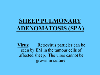 bronchi and then form slow-growing tumours with death at 3-4 years of age. Low exercise tolerance, (hence the Afrikaans name of Jaagsiekte which means driving sickness), gradual weight loss, dyspnoea, and death. Secondary bacterial infection by Pasteurella haemolytica often precipitates death. |