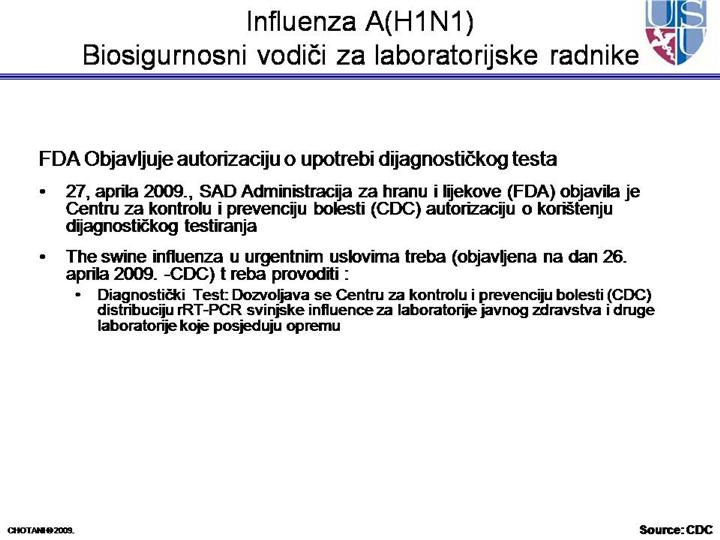FDA authorizes emergency use of influenza medicines, diagnostic test in response to swine flu outbreak in humans [news release]. Rockville, MD: U.S. Food and Drug Administration. April 27, 2009. http://www.fda.gov/bbs/topics/NEWS/2009/NEW02002.html. Accessed April 28, 2009.
