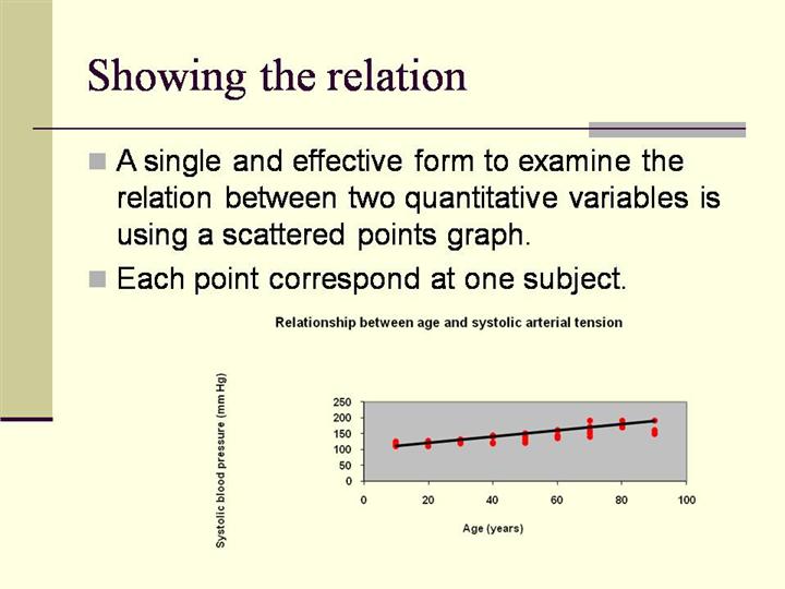 For example, in a study of hypertension in 40 women, the medical doctors have interest in the relation between age and systolic blood pressure.