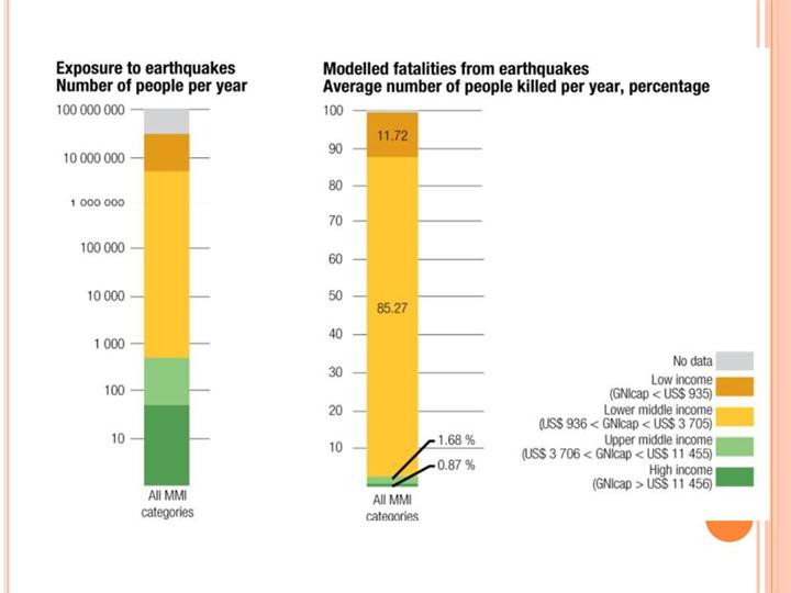 المتوسط معرضون بشكل أكبر لخطر الزلازل ، أما العمود الى اليمين فيؤكد على أن