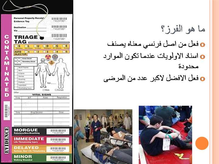 فرز المرضى على أساس الاحتياجات الفورية للرعاية.