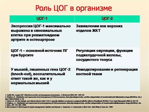 2. Wallace JL. Distribution and expression of cyclooxygenase (COX) isoenzymes, their physiological roles, and the categorization of nonsteroidal anti-inflammatory drugs (NSAIDs). Am J Med 1999;107(6A):11-16.