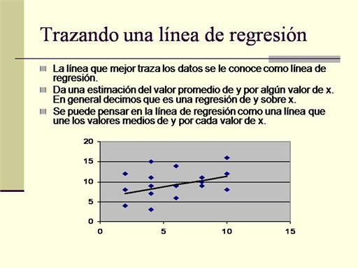 La gráfica muestra como la línea trazada va a través de la media de las observaciones de y por cada valor de x. En el caso de la hemoglobina y edad, la regresión de hemoglobina sobre edad, da una estimación del promedio de hemoglobina por cada valor de edad. |