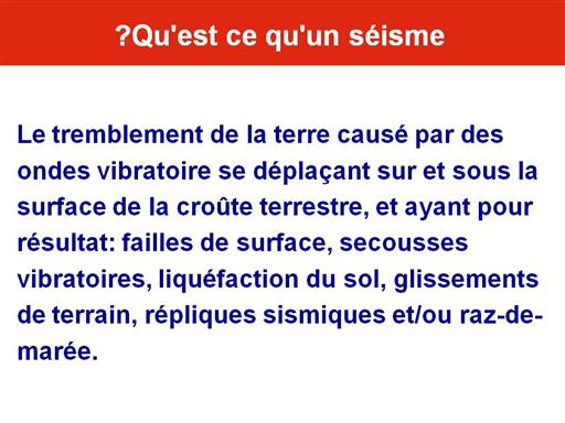 de terre” (ou séisme) est utilisé pour décrire à la fois un