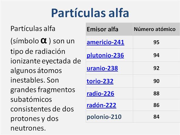 alfa, que continúan emitiendo partículas alfa. Alfa radionúclidos emisores