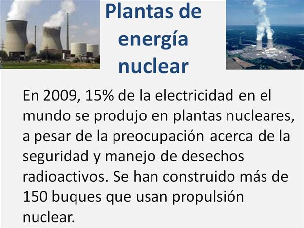 En 2009, el 15% de la electricidad mundial provino de la energía nuclear,