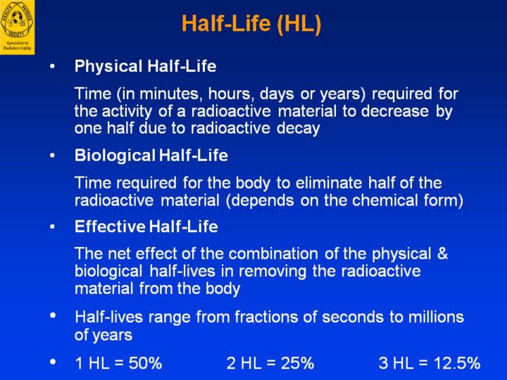 physical half-life is the amount of time required for a given amount of