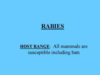 - Transmitted by bites through infected saliva (and by aerosols where high concentrations of virus eg in caves where there are high concentrations of bats). - Found throughout the world but some countries free. - Wildlife act as important reservoir hosts; the species involved varies with