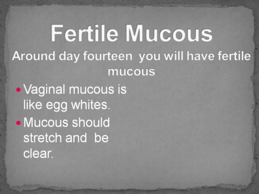Get in the habit of wiping yourself from front to back after you urinate, and looking at the tissue before you dispose of it. Try to keep track when you are fertile. Unfortunately, for the following months you need to estimate when you will have fertile mucous. This should be on approximately day 14. You should not have intercourse three days before you have fertile mucous since sperm can live up to three days. |