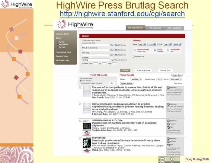 URL links from the slide: http://highwire.stanford.edu/cgi/search