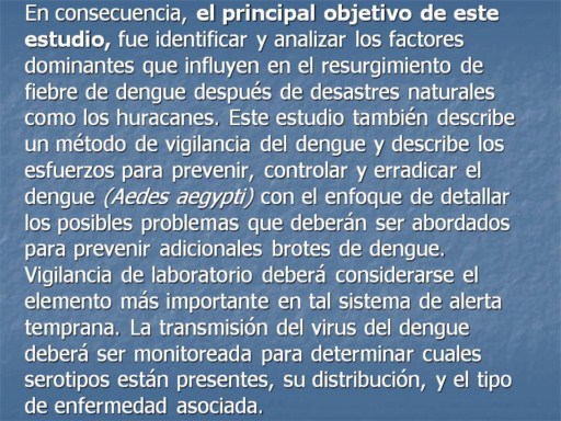 aplicarán y las grandes epidemias se evitarán, después de un huracán. Un