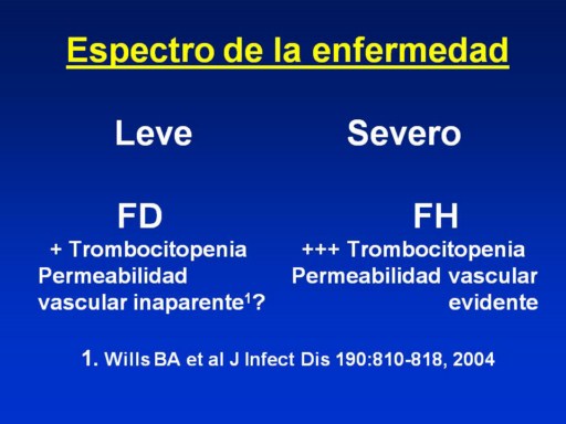 Las infecciones con virus del dengue resultan en un espectro clínico desde signos de leves a graves (síndrome de la permeabilidad vascular). Los principales determinantes de los resultados clínicos son la edad y el estado inmunológico. |