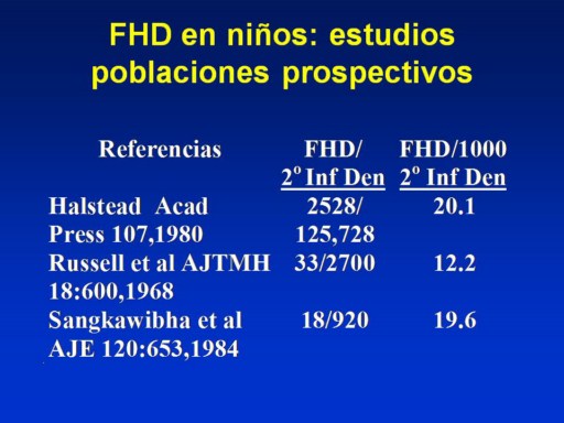 El estudio Halstead se llevó a cabo en 1962-4, el de Russel et al en la isla de Samui Kah en el Golfo de Siam, Sangkawibha es una prueba de neutralización, para el seguimiento de cohortes que viven en Rayong, Tailandia en 1980. |