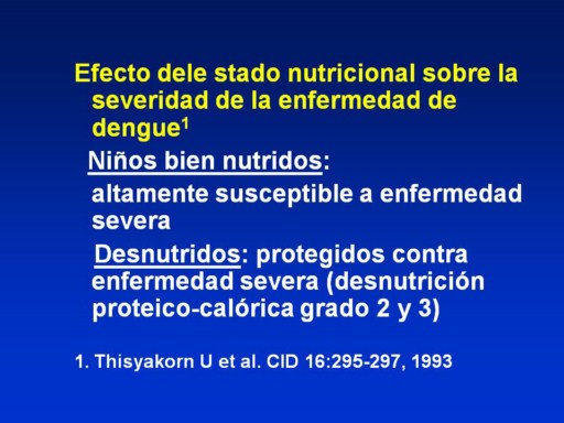 Desnutrición proteico-calórica grados 2 o 3, protégé contra la vasculopatía de la enfermedad severa del dengue.