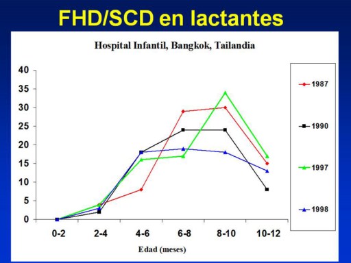 Distribución por edad de lactantes hospitalizados en el Instituto Nacional de Salud Infantil Reina Sirikit (Hospital Infantil de Bangkok). De Halstead et al. EID 212:1474-1479, 2002. |