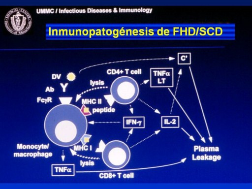 Permeabilidad vascular en infecciones de dengue es un fenómeno eferente secundario al ataque de células T a las células infectadas por virus. Esto activa al complemento y genera un “tormenta perfecta” de citoquinas que correlacionan con la severidad de la enfermedad. Un a masa celular infectada con dengue incrementada correlaciona con la respuesta de las células T y producción de citoquinas (Pang T et al. Immunol Cell Biol 85: 43-5, 2007)