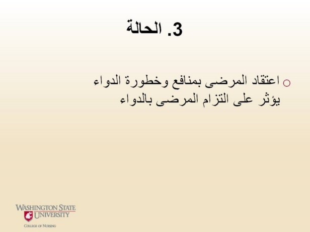 اعتقاد المرضى بمنافع وخطورة الدواع يؤثر على التزام المرضى بالدواء.