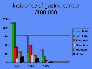 illustrates the extent of the decline in gastric cancers over the past 30 years (plotted