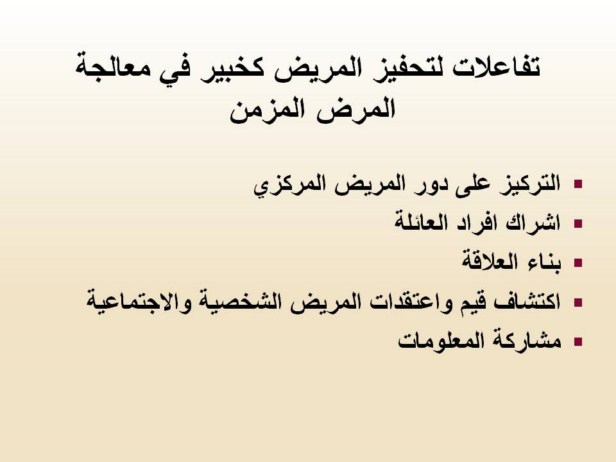 المرجع: Institute for Healthcare Improvement (2009). Patnering in Self-Management Support: A Toolkit for Clinicians. Available at: http://webcache.googleusercontent.com/search?q=cache:3K2554SIveYJ:www.improvingchroniccare.org/downloads/partnering_ |