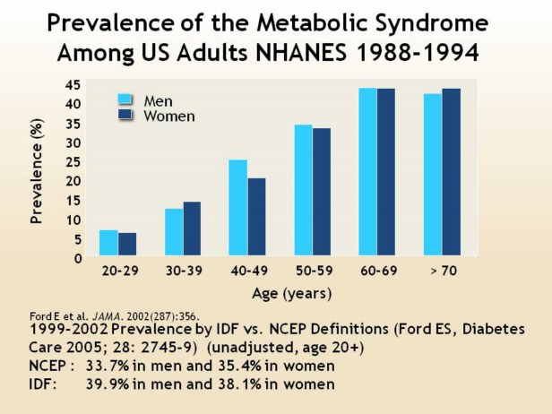 Age-Specific Prevalence of the Metabolic Syndrome Among 8814 US Adults aged at least 20 years, by Sex, National Health and Nutrition Examination Survey III, 1988-1994 |