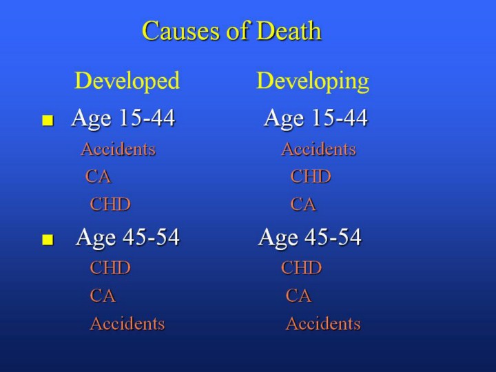 If one looks that the most productive segments of society in developing and developed countries, the causes of death are virtually the same. |