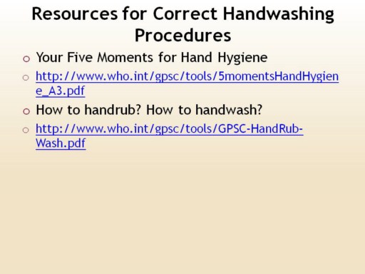 http://www.who.int/gpsc/tools/5momentsHandHygiene_A3.pdf http://www.who.int/gpsc/tools/GPSC-HandRub-Wash.pdf