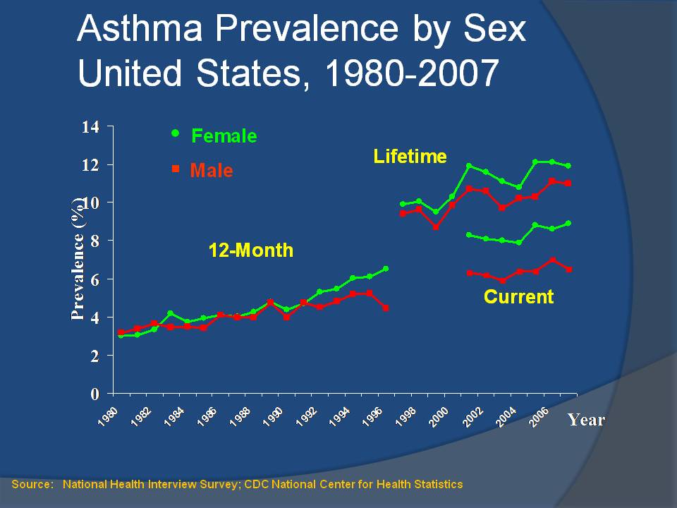 Since 1992, rates for women have been higher than rates for men on all three measures of asthma prevalence.