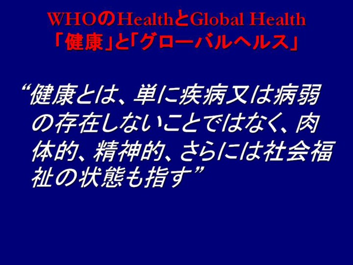 の健康の古典的定義です。国内でも国外でも健康問題で最も重要な点でした。