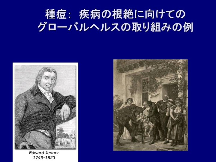 医師たる皆さんは天然痘の患者を診ることはないでしょう。曽祖父たちの時代とはまったく違うのです。臨床家たちは公衆衛生関係者・グローバルヘルス研究者とともにそれまで知られていたうちで最も致死的なこの病気の根絶に取り組みました。もし私たちが目の前のローカルな問題に一緒に取り組むことができれば、天然痘での成功を継続させ、グローバルヘルスで大きな効果を得ることができるのです。