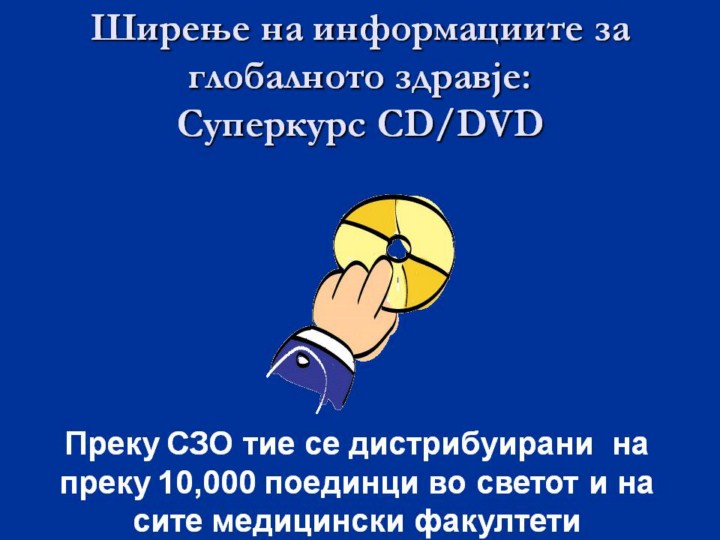 Суперкурс CD-та се подарок за кој ние мислевме дека треба да го дадеме. Ние дадовме како подарок исто така и Суперкурс DVD кои можат да ги користат 5 студенти и библиотеките. |