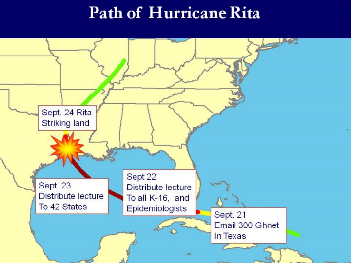 We built a Rita lecture and distributed it to all schools in Texas, and 48 states before the hurricane struck land |