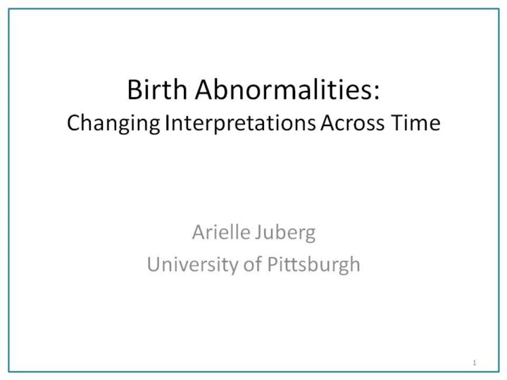 This PowerPoint presentation presents the social history of birth abnormalities. It will cover the medical, religious, and social interpretations of physically deformities. Then, it will survey the current views on these abnormalities. |