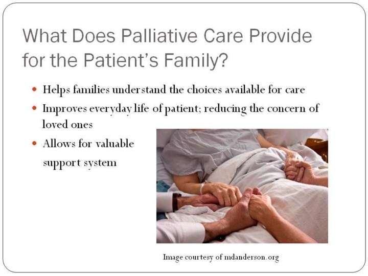 | “We [palliative care team] can…provide a support system to help relatives and friends cope with your illness.” -http://www.mmc.org/mmc_body.cfm?id=3463
