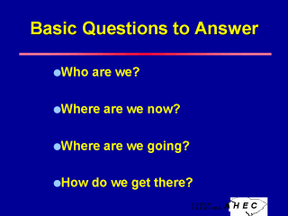 These are the basic questions that a community must answer as they develop their strategic plan. Knowledge is key to the success of the planning effort.