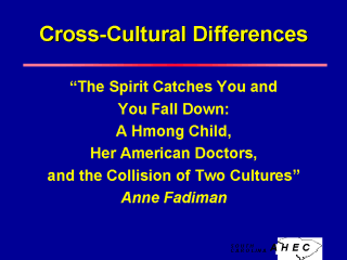 speaking people. The Hmong have a holistic approach to healing; they heal the soul first, then heal the body. Thus, they have a great mistrust of western medicine which ignores the spiritual aspect of illness. The faith practices of the Hmong people persist even though they may seek western medicine. These conflicting cultures are tragically illustrated in the story of Lia Lee, a Hmong girl who developed a severe form of epilepsy as an infant. Although Lia had many seizures witnessed by her parents, they did not seek western medical care until she had a violent seizure at three months of age. (See next slide). |