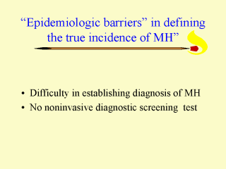 epidemiology of Malignant Hyperthermia (MH) is very difficult to study. Although MH