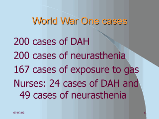 represents a 2% sample based on London and South East England. The neurasthenia cases included examples of shell shock as the term was discouraged by military medical authorities from 1917 onwards. Any cases exposed to gas which had lasting physical damage, were excluded. Every case of DAH and neurasthenia in nurses was included. |