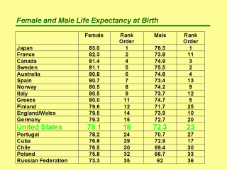 However, pouring money into healthcare is not in and of itself a solution. Although the United States spends more on healthcare than any other nation, we rank 18th in life expectancy for women and 23rd for men. Clearly, life expectancy can be extended significantly with only modest commitments of resources. And yet in far too many places, there exist profound gaps between what is and what could be. |