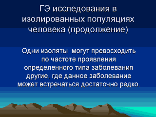 | Такие межпопуляционные различия в накоплении определенных клинических фенотипов являются результатом действия эффекта родоначальника и дрейфа генов, действие которых усиливаются другими эффектами -эндогамией и инбридингом. |