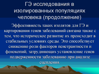 Соответственно высока вероятность того, что в изолятах мы скорее выявим физическое сцепление маркера с геном заболевания.