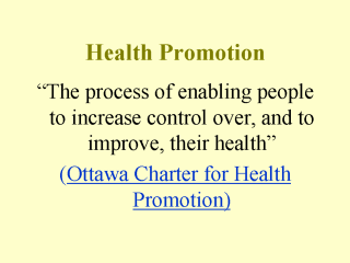 talking about when we talk about health promotion. One of the most important is the idea