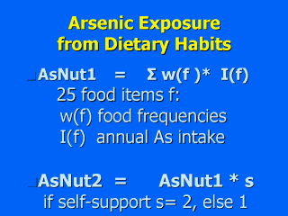 The exposure to arsenic was calculated by weighting the frequency categories of food