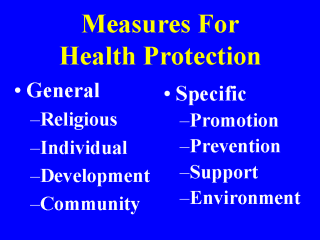 | The main broad lines for health protection includes the general and specific measures shown in the following slides. |